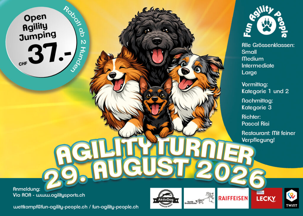Der Startschuss in die neue Agility Saison, fällt bei den „Fun Agility People“ am 19. Januar 2026. Endlich wieder Training- und Wettkampfluft, für die aktiven Teams. Wir wünschen allen ein gesundes und erfolgreiches Jahr. Wir freuen uns über Fortschritte in den Teams und tolle Ergebnisse bei Meetings.